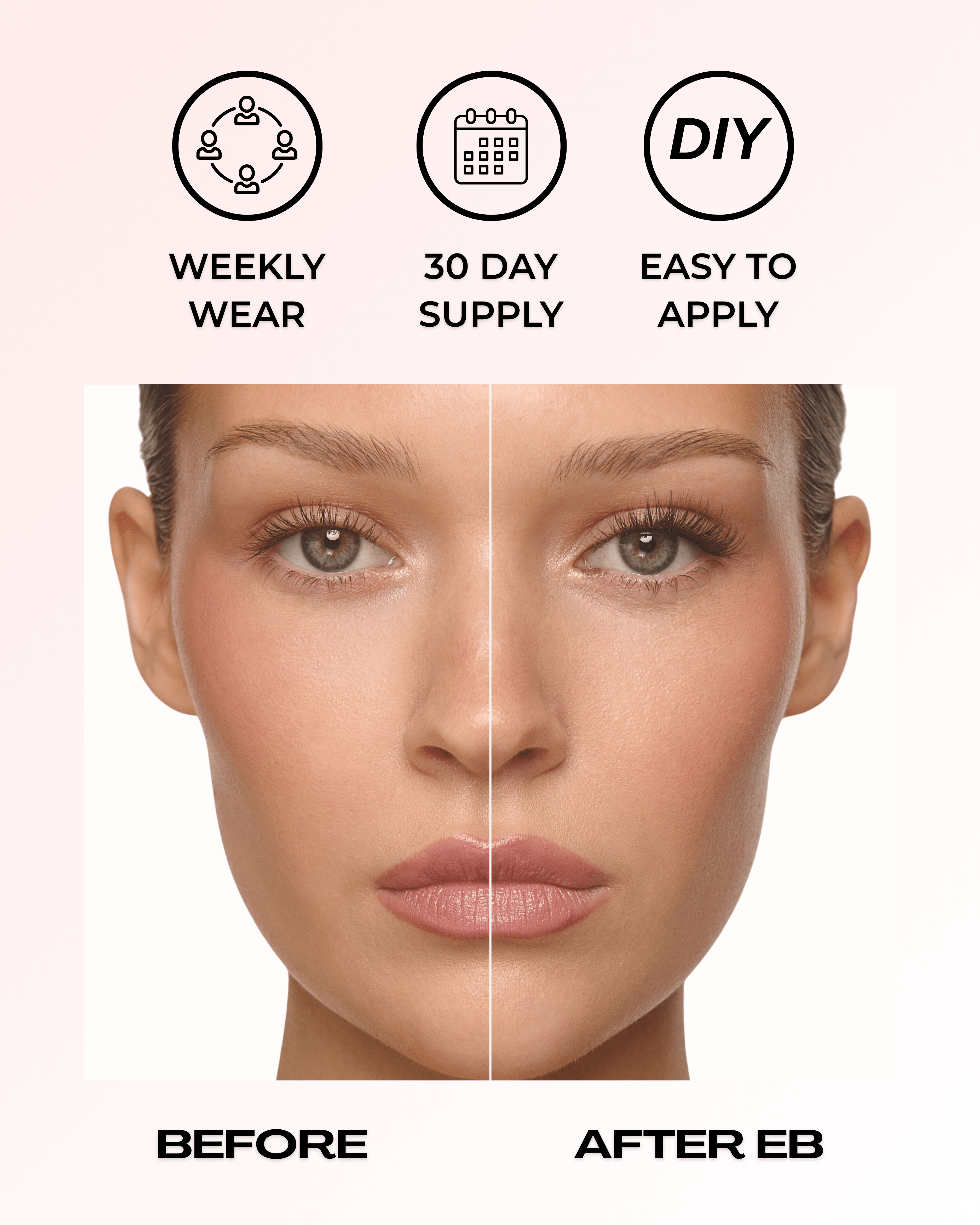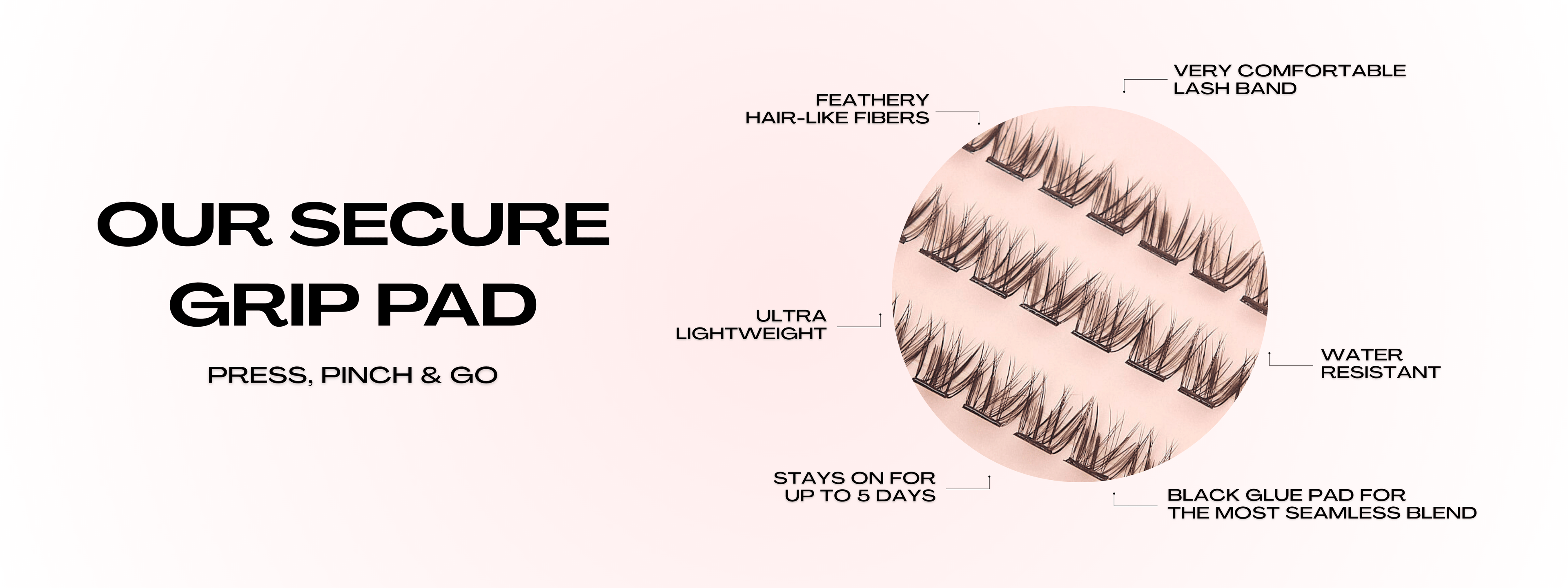 The lash shortcut you’ve been waiting for. Apply the clusters underneath your natural lashes, Press, Pinch & Go. Lashes in seconds—no glue required.
